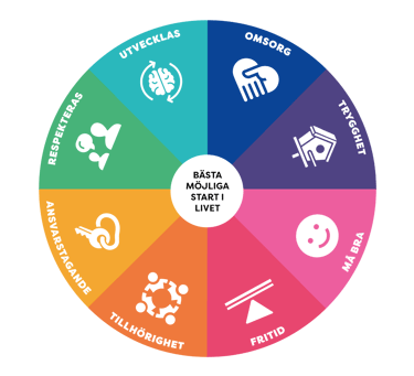 Att omvandla barns rättigheter från teori och lagar till meningsfull praktik är ett av våra viktigaste uppdrag och precis vad vi jobbar med på Barnduken. Med detta som utgångspunkt vände sig Backa Barnet med sin modell grundad på barnkonventionen och åtta definierade behov (Skottlandsmodellen/GIRFEC) till oss för att samarbeta. Vi identifierade snabbt ett behov av ett konkret samtalsverktyg och vårt uppdrag på Barnduken var att fylla detta behov med ett engagerande, barnvänligt och praktiskt verktyg. Målet var att stärka offentligt anställda i kommuner anslutna till Backa Barnets modell att systematiskt uppmärksamma, utforska och diskutera att samtliga kommunens barn åtta grundbehov möts.